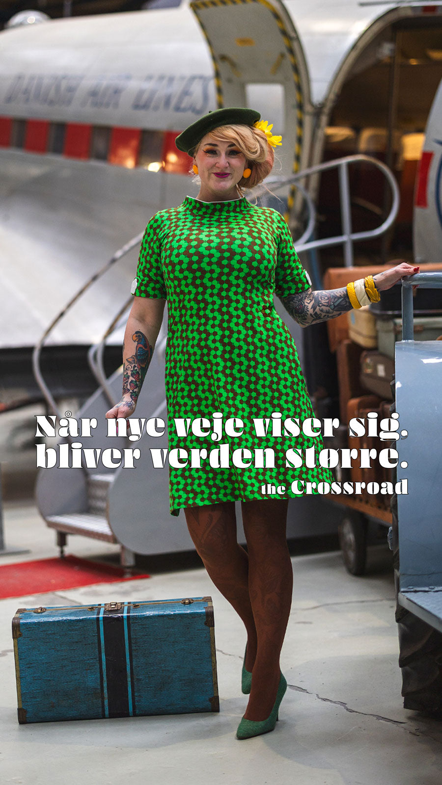 Den grønne farve går som en melodi gennem alt -tøj, hatte, strømper og stemningen.