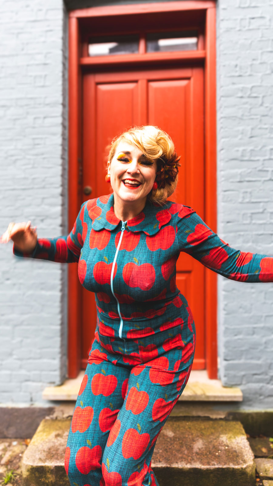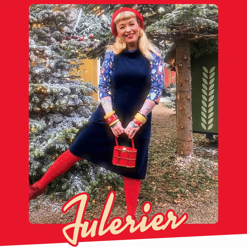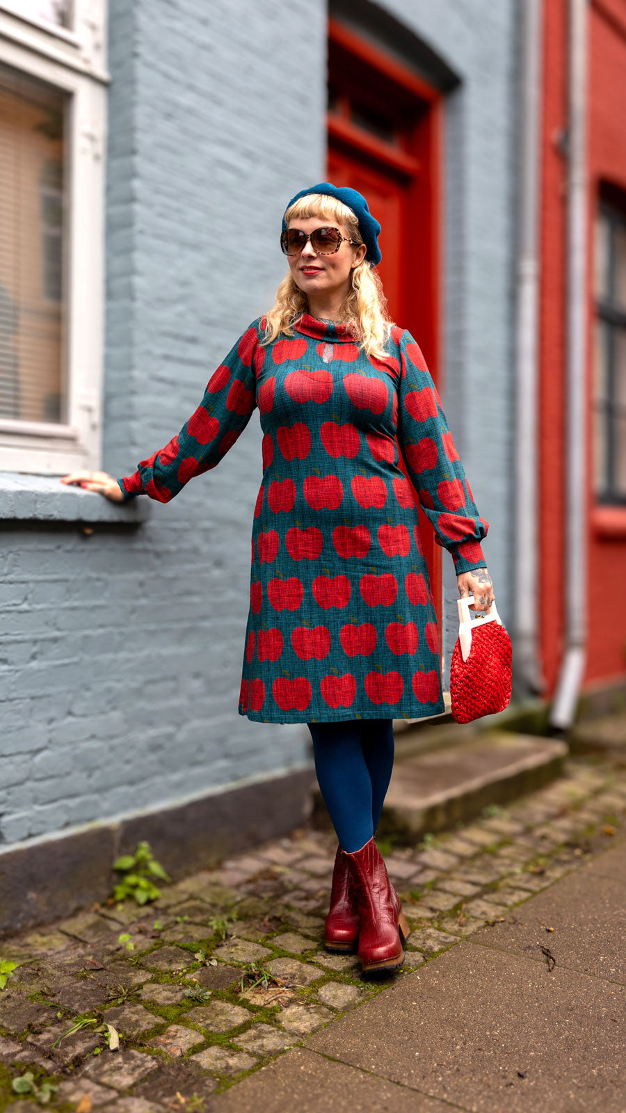 Den grønne farve går som en melodi gennem alt -tøj, hatte, strømper og stemningen.